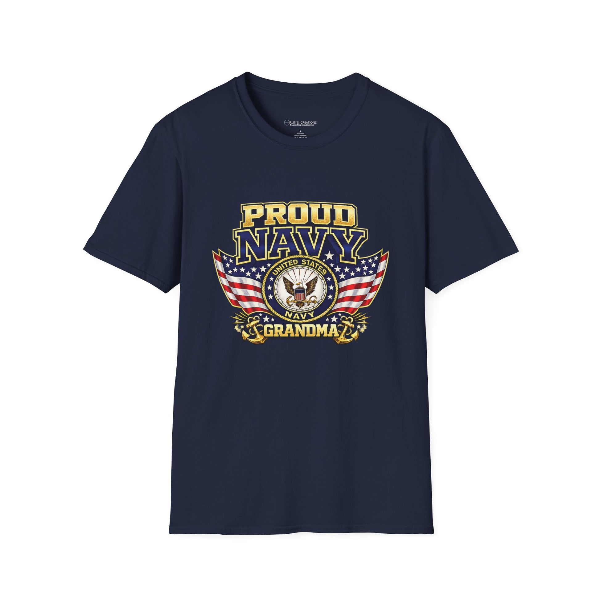 Proud Navy Grandma T-Shirt — Navy Blue with U.S. Navy Emblem