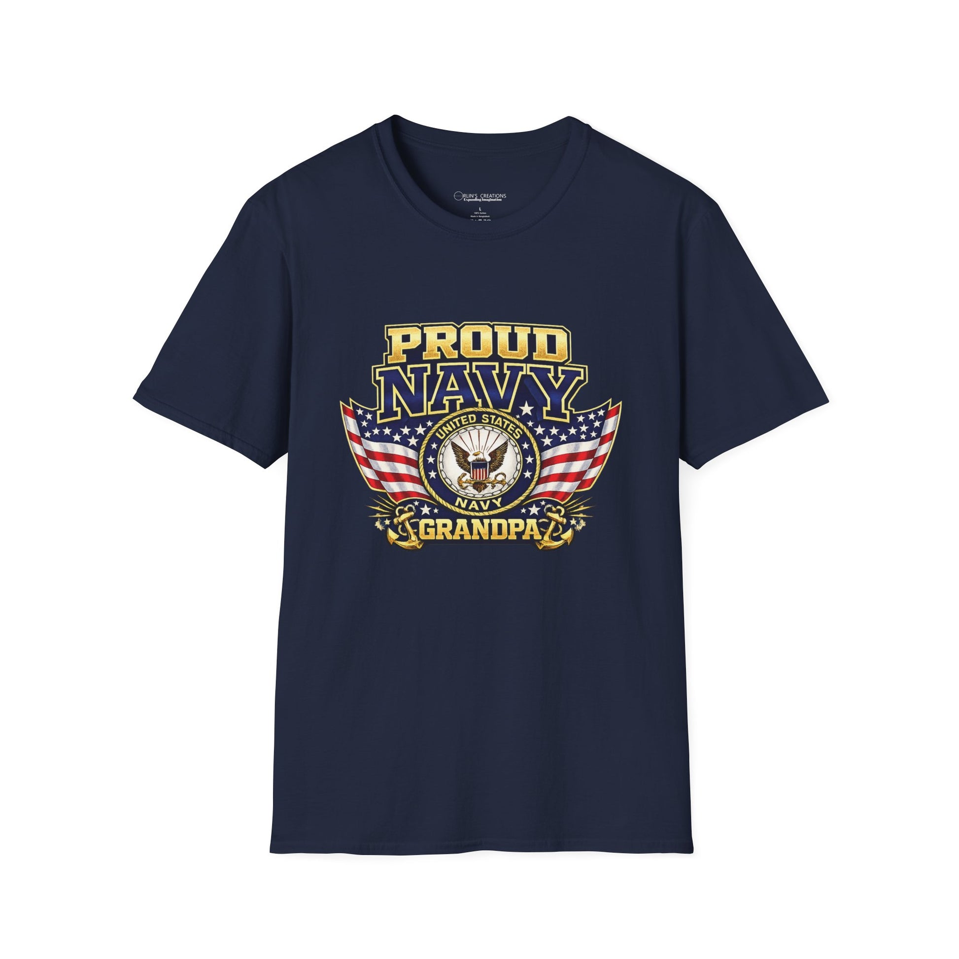 Proud Navy Grandpa T-Shirt — Navy Blue with U.S. Navy Emblem